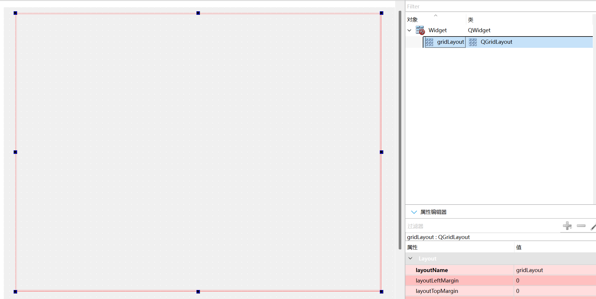 新建QT工程,在ui文件里放置一个QGridLayout组件。