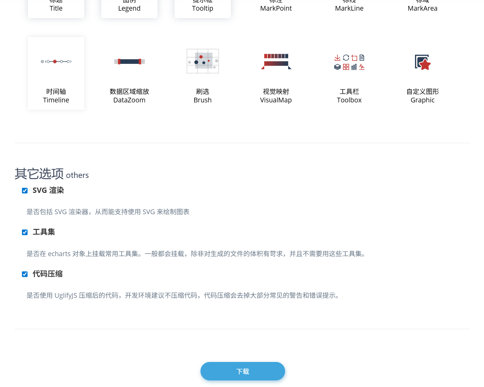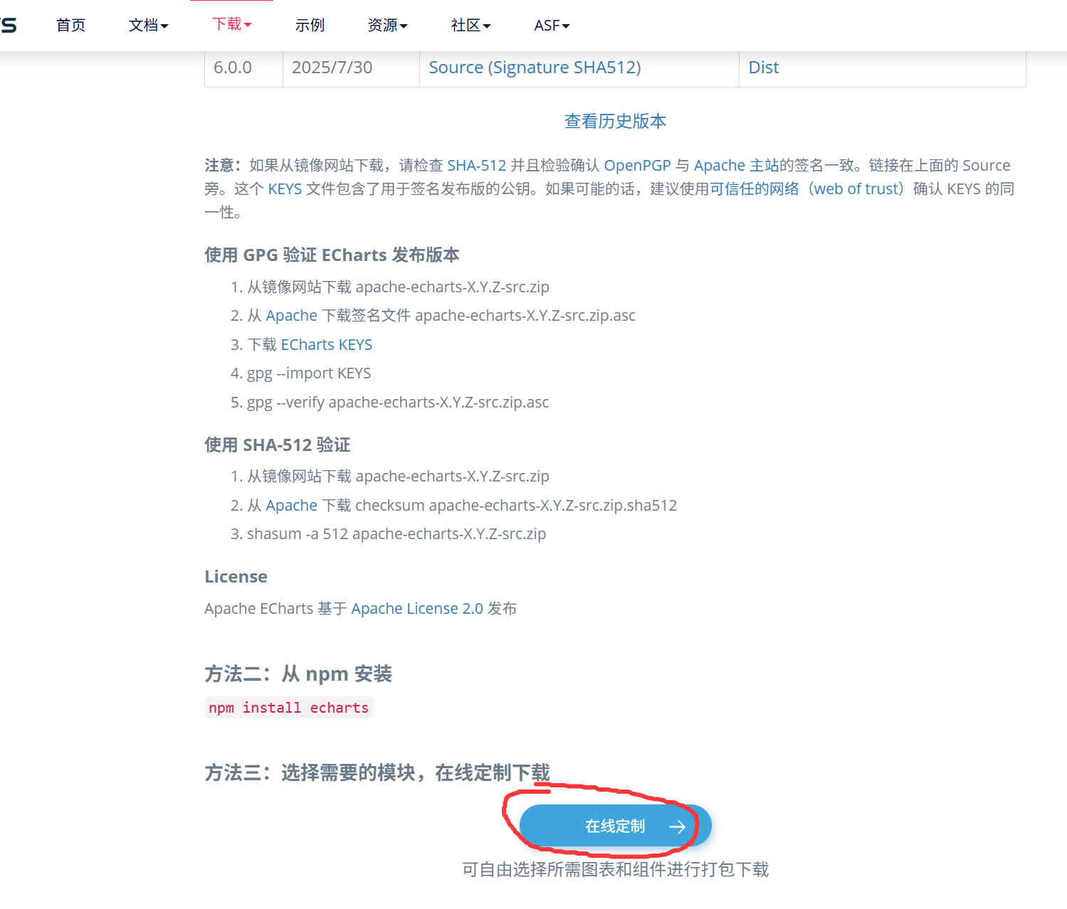 打开官网https://echarts.apache.org/zh/index.html,进入下载页面,点击在线定制
