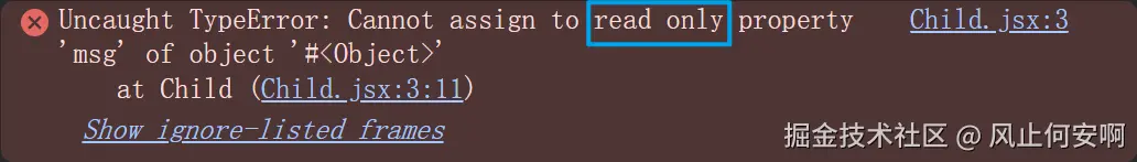 // props.msg = 'harvest'; // ❌ 报错!props 是只读的,不能改!
