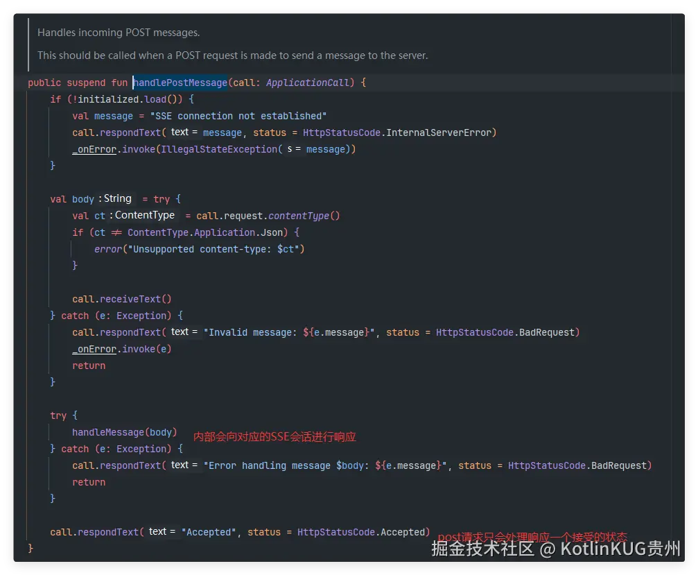 call.respondText("没有sessionId参数,不知道你是哪一个SSE会话", status = HttpStatusCode.BadRequest)