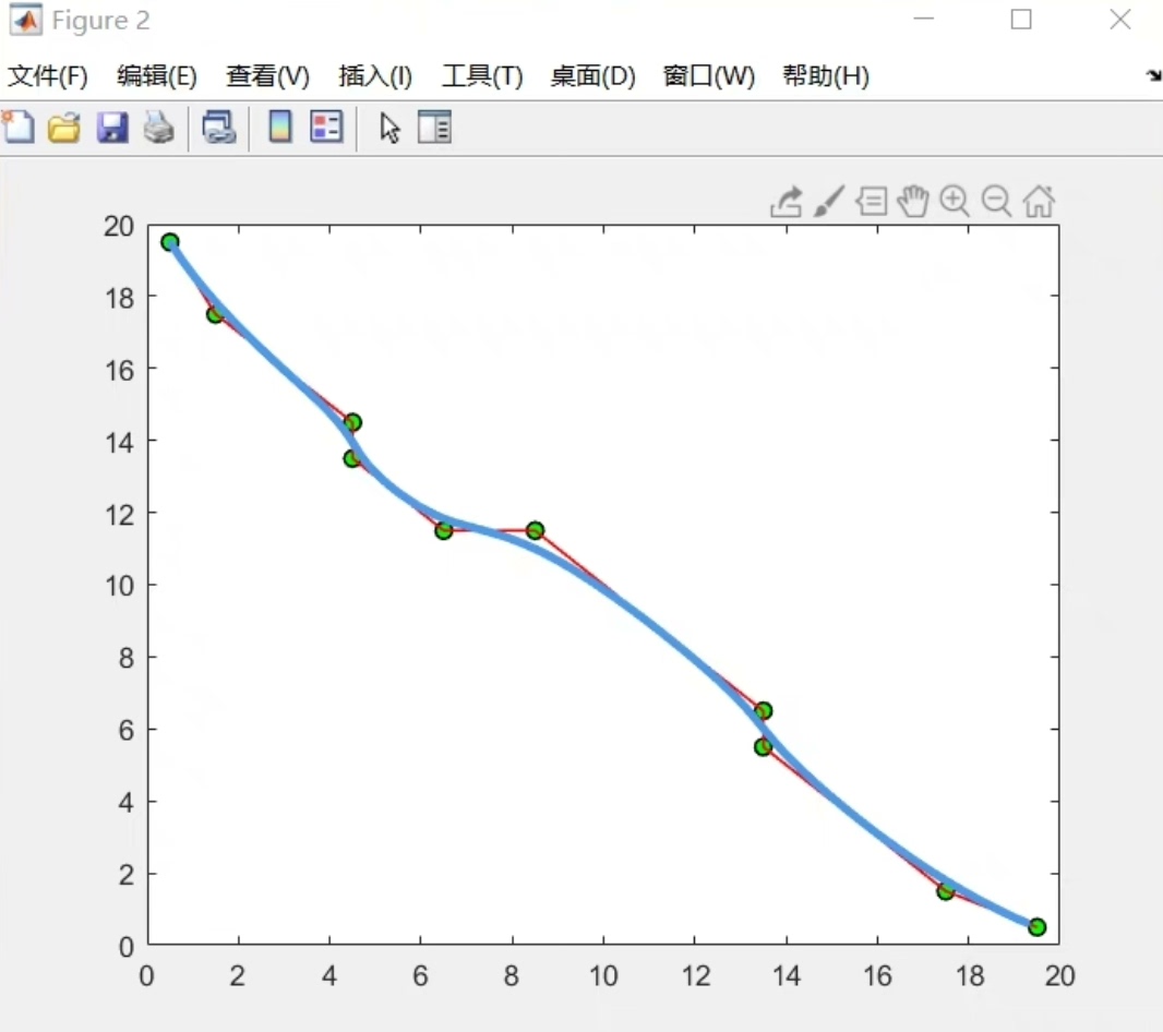 在这个例子中,我们先定义了一组控制点,然后调用 bSpline3Optimization 函数得到优化后的曲线点,最后将控制点和 B 样条曲线绘制出来。可以看到,通过 3 次 B 样条优化,原本生硬连接控制点的图形变得平滑了许多。