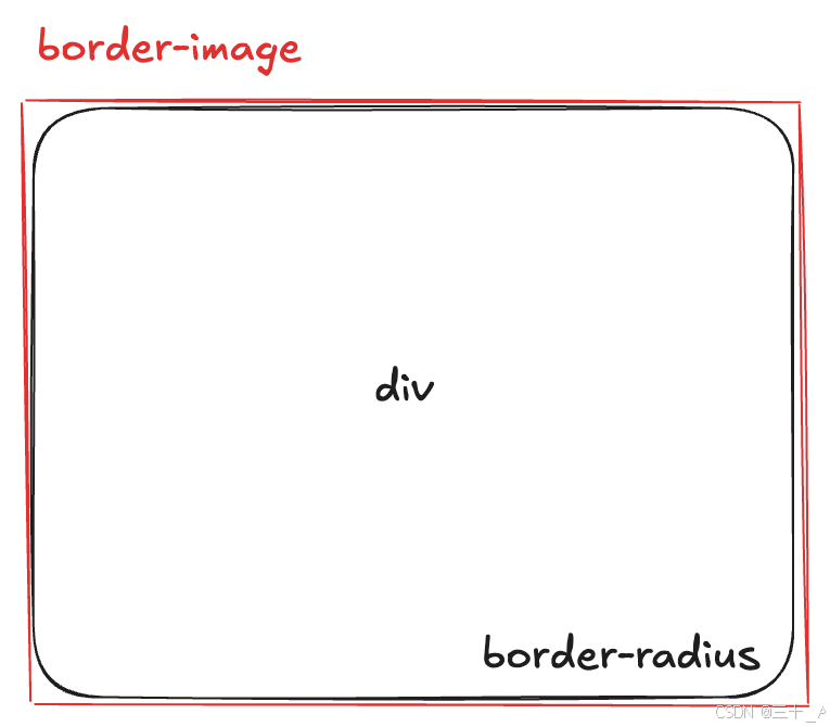 border-radius作用在 div 元素上,它控制的是整个 div 轮廓的圆角。border-image绘制边框,是独立于 div 之外的,是脱离于 div 的。