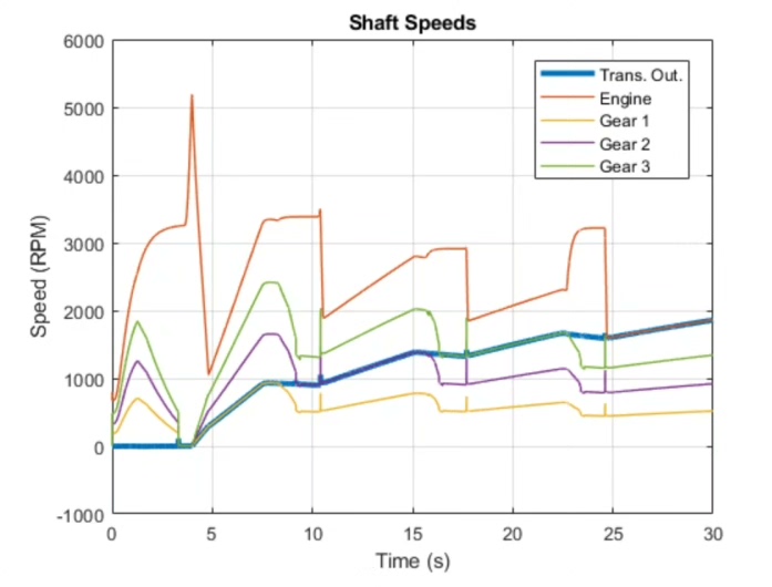 Simulink的强大之处就在于,我们搭建好模型后,直接运行就能出图。这对于快速验证系统性能和分析结果来说,简直不要太方便。比如我们可以直观地看到换挡过程中转速、扭矩等参数的变化曲线。