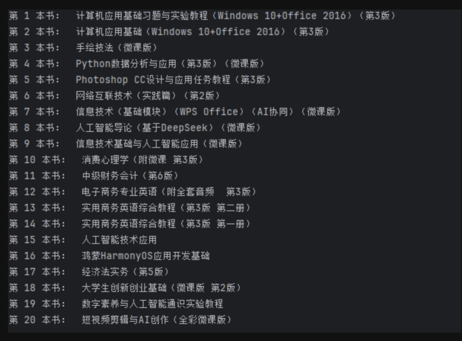 print('第',i+1,'本书: ',result[i][1])