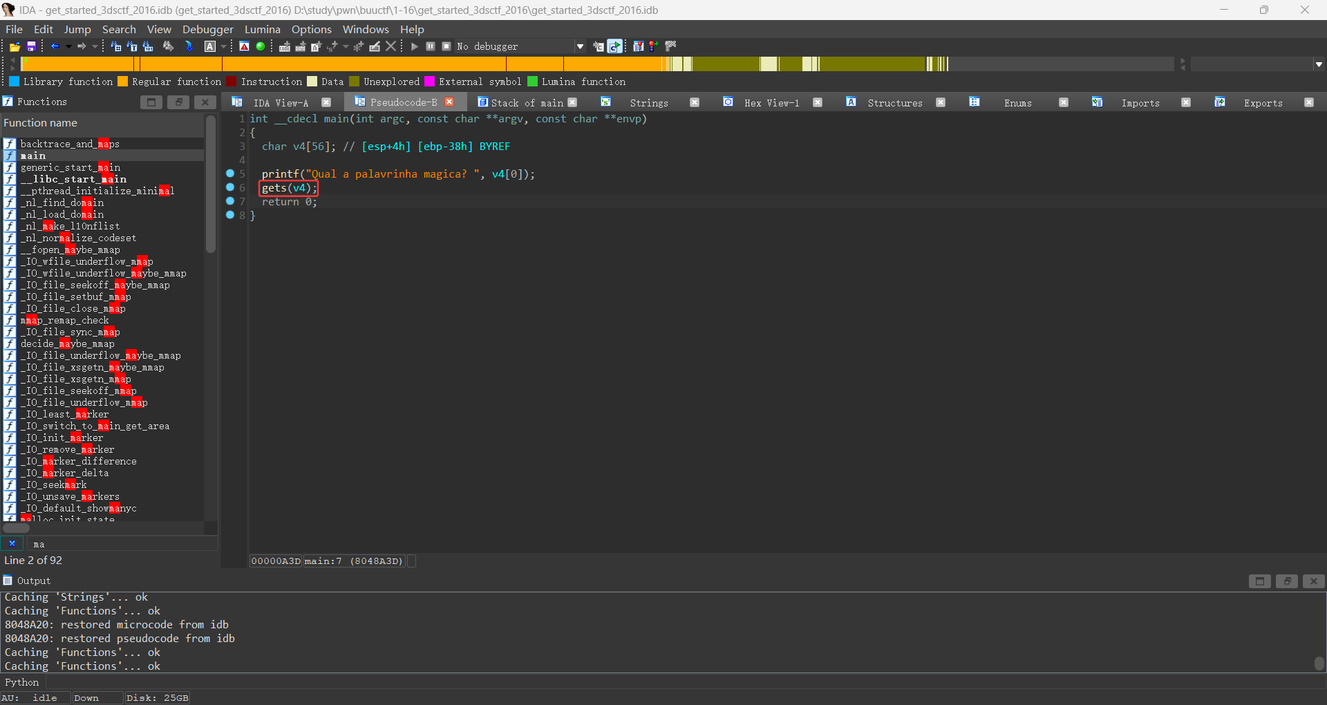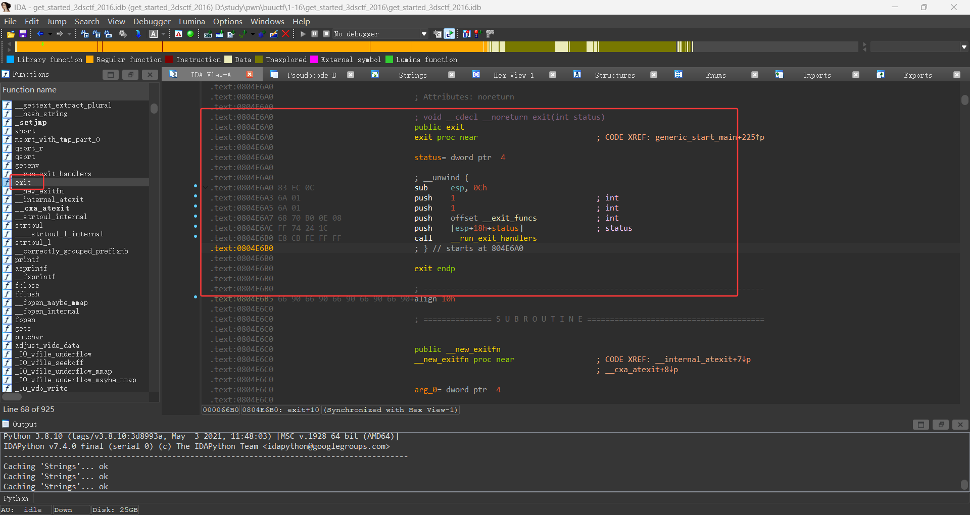 由于该题目没开启标准输入输出,于是我们得让函数正常退出来得到回显