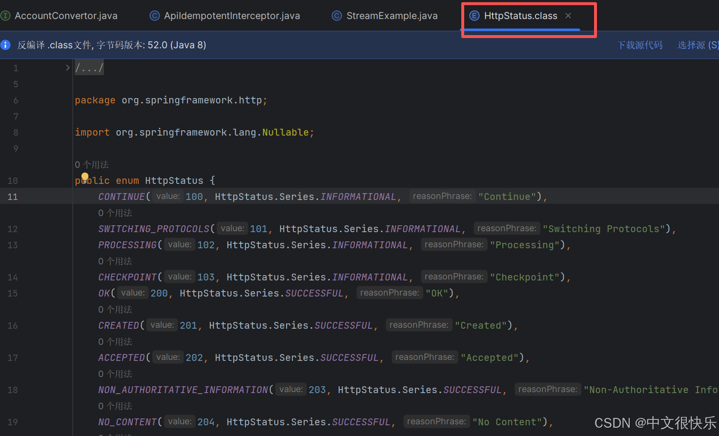 查看该类可以查看有很多不用自定义直接使用的常量状态码: