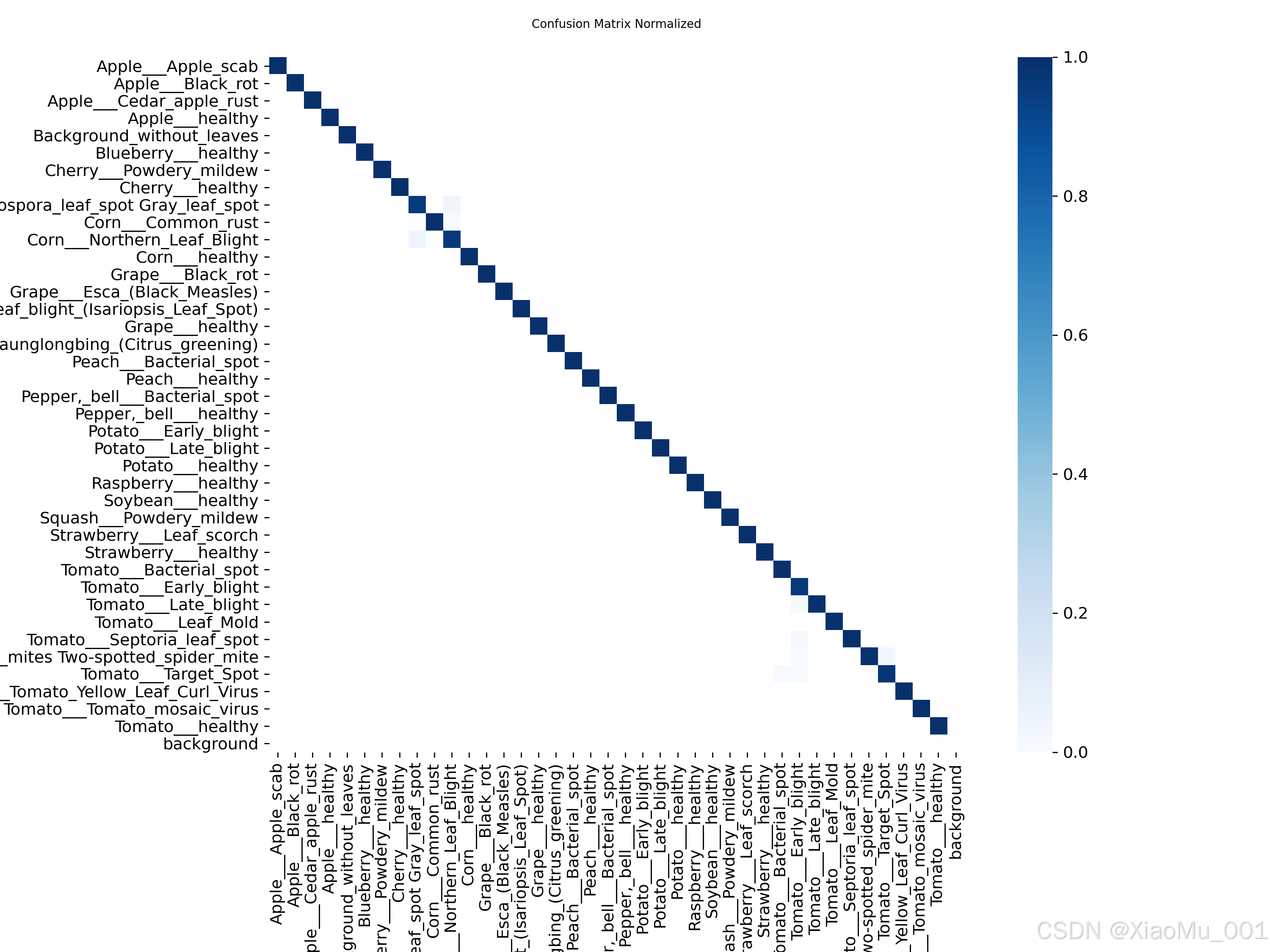 - 误判分析: 非对角线区域数值极低,表明模型极少发生类别间的混淆,具有极高的分类特异性。