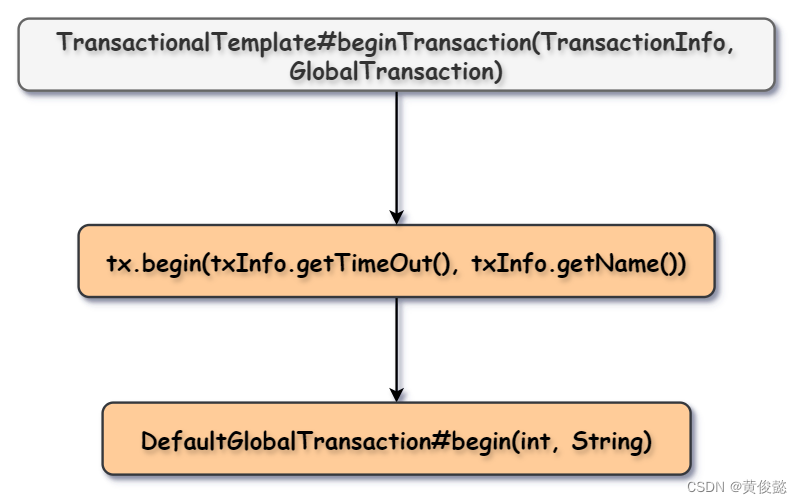 TransactionalTemplate的beginTransaction会调用DefaultGlobalTransaction的begin方法开启全局事务。