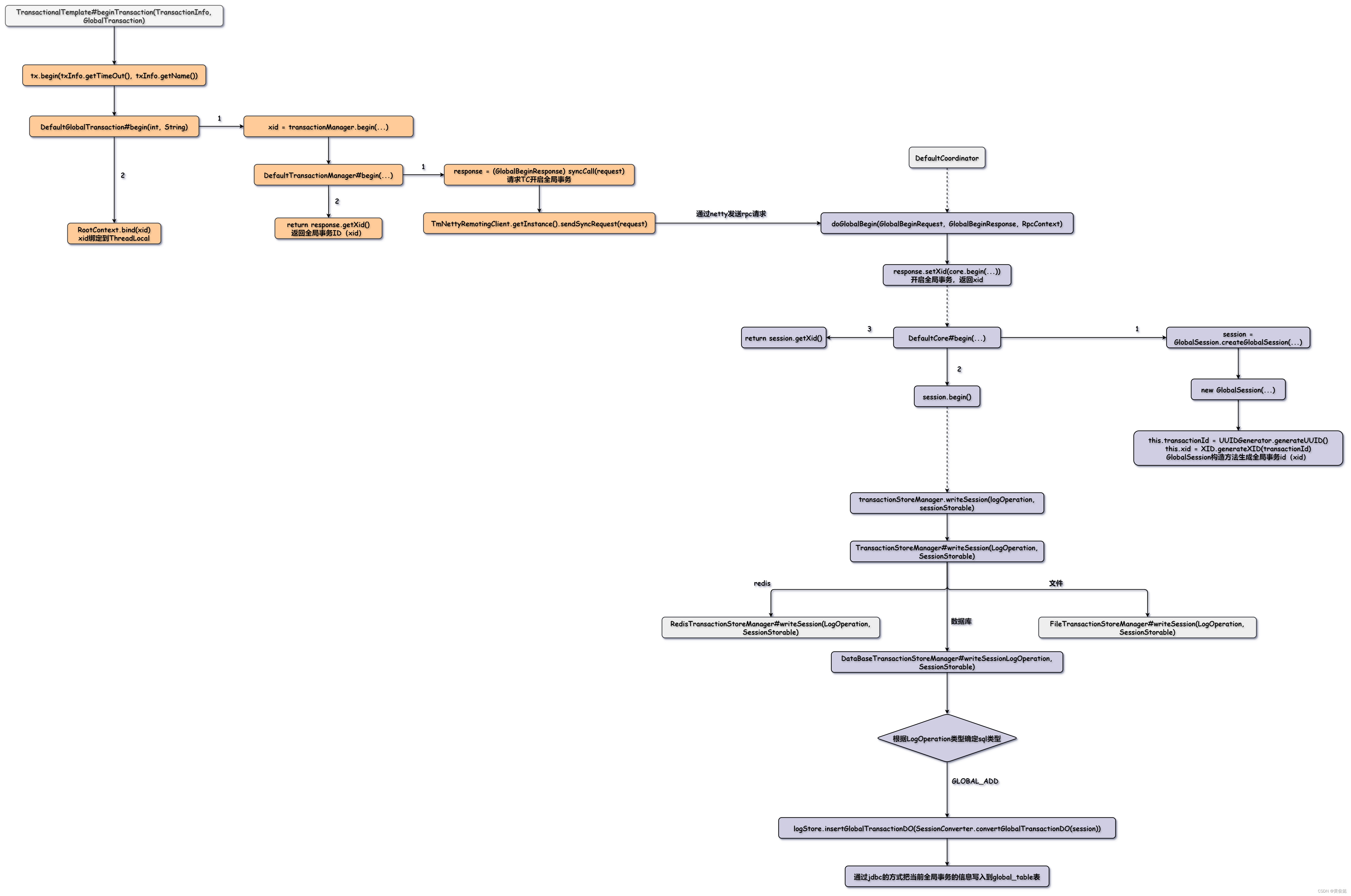 生成了GlobalSession之后,DefaultCore就会调用它的begin方法。