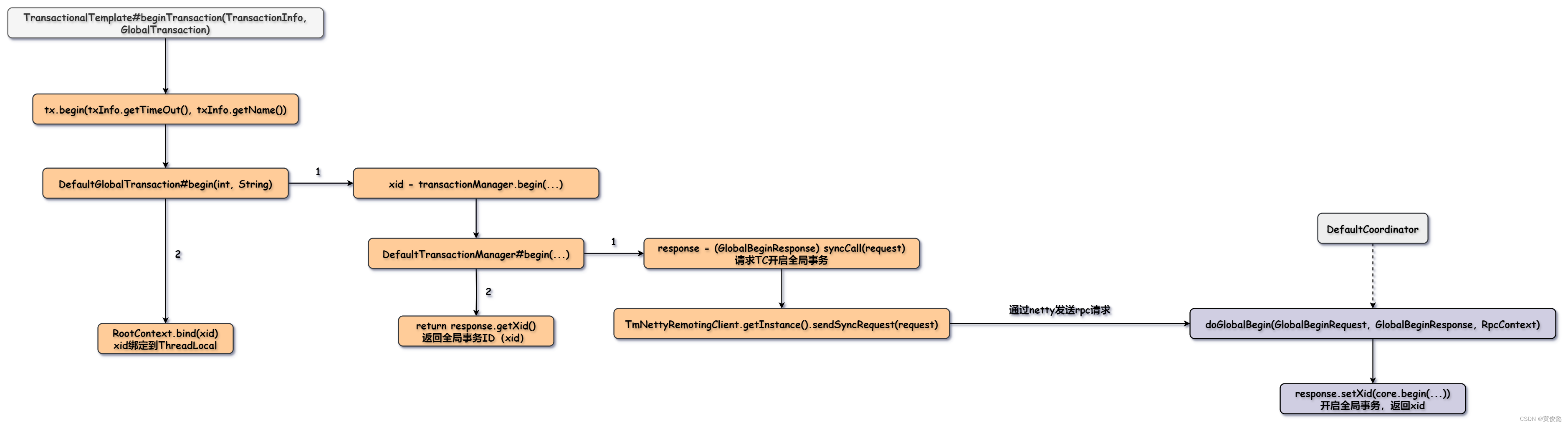 - [DefaultGlobalTransaction#begin(int, String)](#begin(int, String))