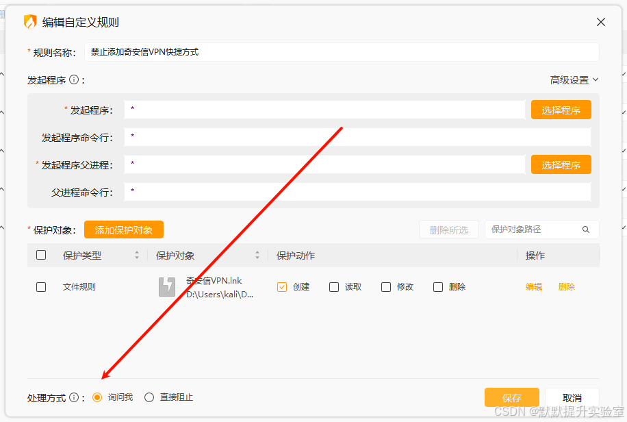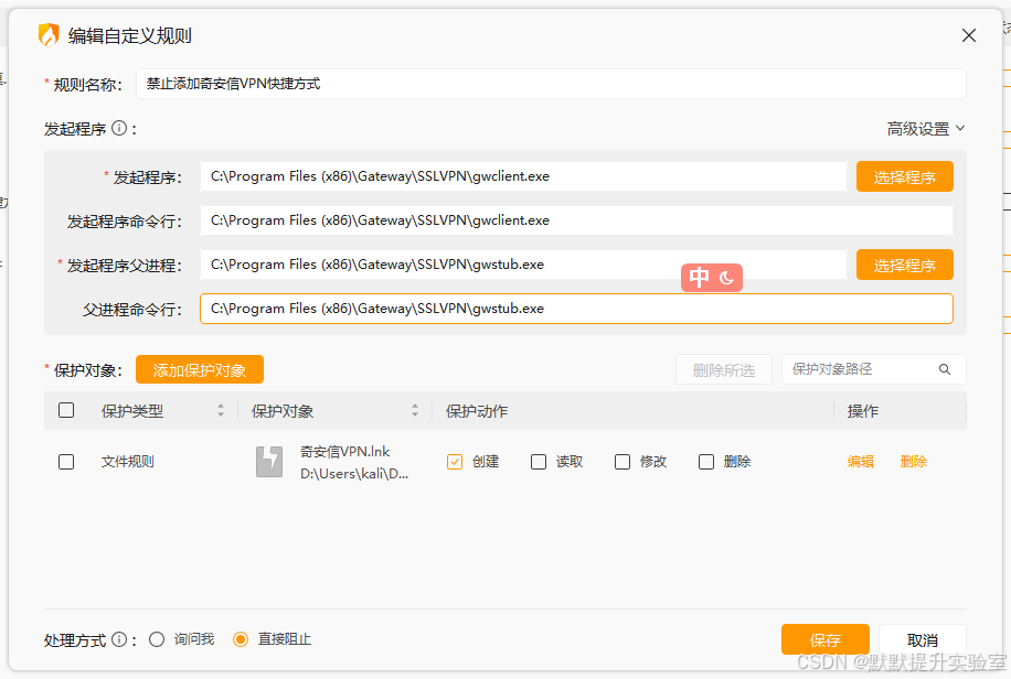 使用火绒自定义规则对发起程序进行拦截,总是拦截失效,规则如下: