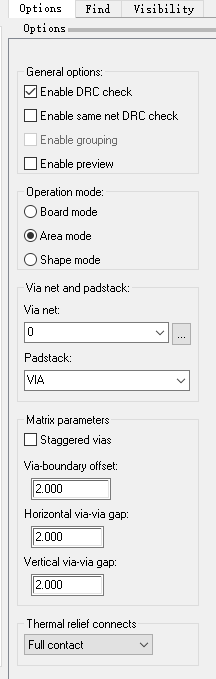 这里以在铜皮上打阵列过孔为例,介绍一下阵列过孔的操作过程。
