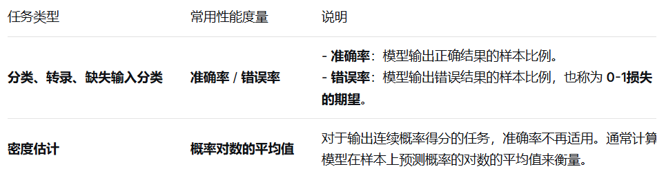 性能度量的选择 与 任务类型 紧密相关,取决于任务的实际应用场景和需求。