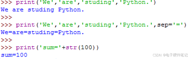 print是用于将字符串输出到屏幕的标准内置函数。若要输出数字,则要使用str()函数进行转换。之前的例子中已使用多次。 例如: