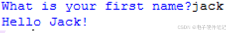 第三行中的函数name.capitalize()将输入的字符串第一个字符转换为大写,其他字符为小写。