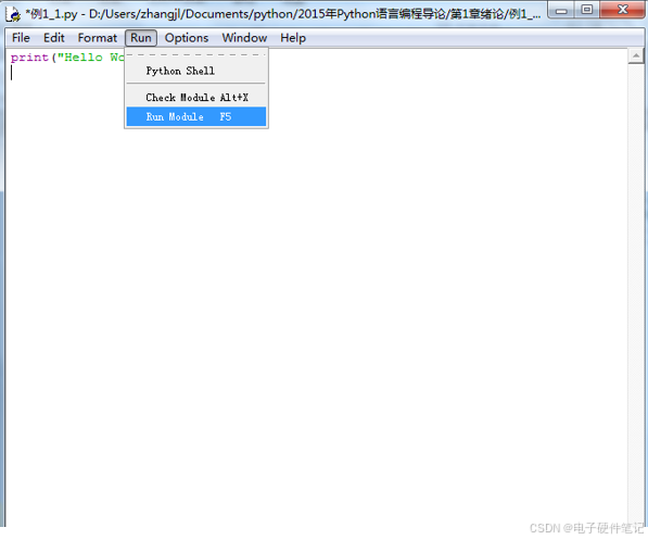 1、启动IDEL 例3-1:用程序实现在屏幕输出"Hello World!"