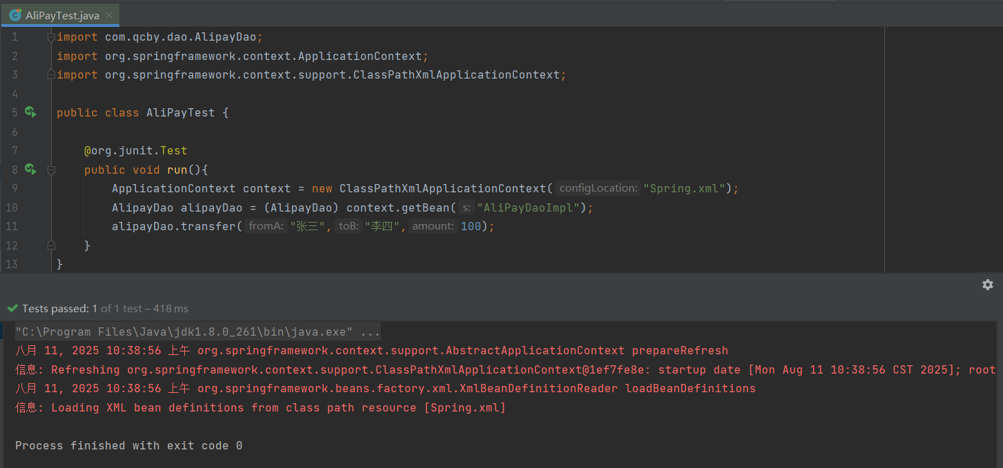 AlipayDao alipayDao = (AlipayDao) context.getBean("AliPayDaoImpl");//使用多态