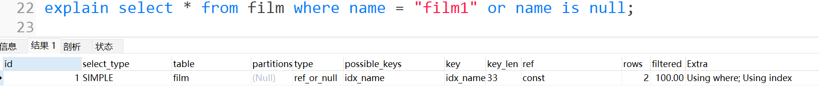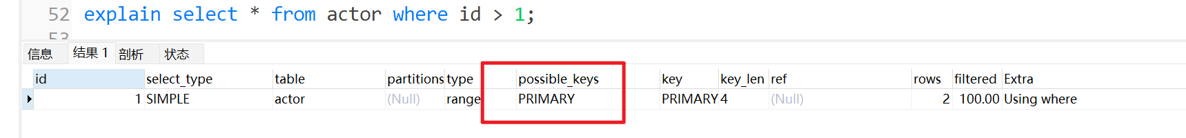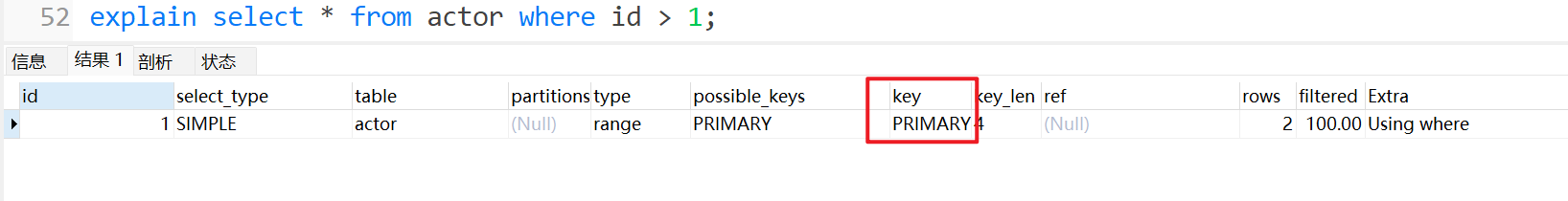 key列显示mysql实际采用哪个索引来优化对该表的访问。