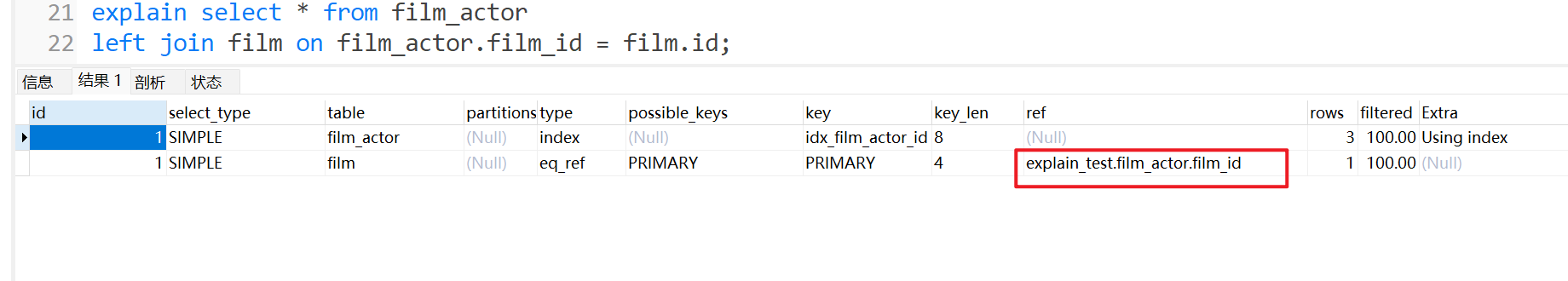 直白点说就是一张表的主键字段和另一张表的外键进行关联,就是eq_ref类型。