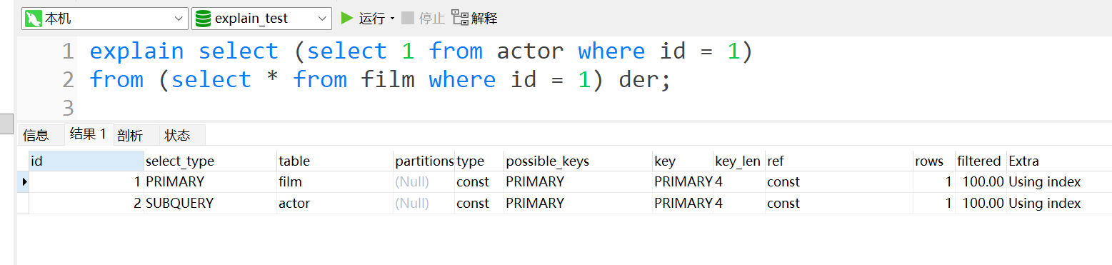id列的编号是 select 的序列号,有几个 select 就有几个id,并且id的顺序是按 select 出现的顺序增长的。