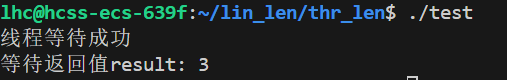 cpp#include <iostream> #include <unistd.h> #include <pthread.h> #include <string> class Task { public: Task() {} Task(int x, int y) : _x(x), _y(y), _result(0) { } ~Task(){} void add() { _result = _x + _y; } void print() { printf("result: %d\n",_result); } private: int _x; int _y; int _result; }; void *start_run(void * task) { Task* t = static_cast<Task*>(task); t->add(); return t; } int main() { pthread_t tid; Task* task = new Task(1,2); pthread_create(&tid, nullptr, start_run, (void *)task); // 创建线程 void *ret = nullptr; pthread_join(tid, &ret); // 线程等待 Task* result = (Task*)ret; std::cout << "线程等待成功" << std::endl << "等待返回值"; result->print(); return 0; }我们这里创建了一个Task类,也就是任务结构体,用来让线程执行,执行完成后,由于线程之间不具有独立性,可以将任务结果数据直接传回主线程,然后再主线程中输出结果