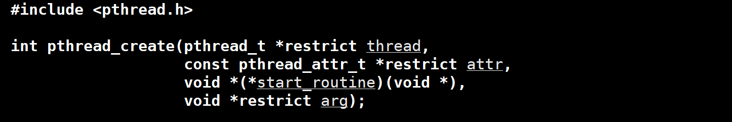 参数3:函数指针,新线程需要执行的函数(返回值和参数都是void*类型)