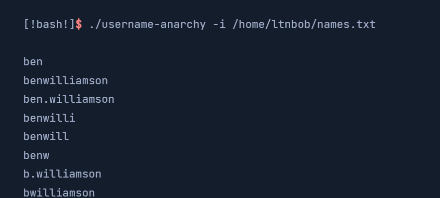 可以通过上述办法做convention,也可以用工具如Username Anarchy,使用: