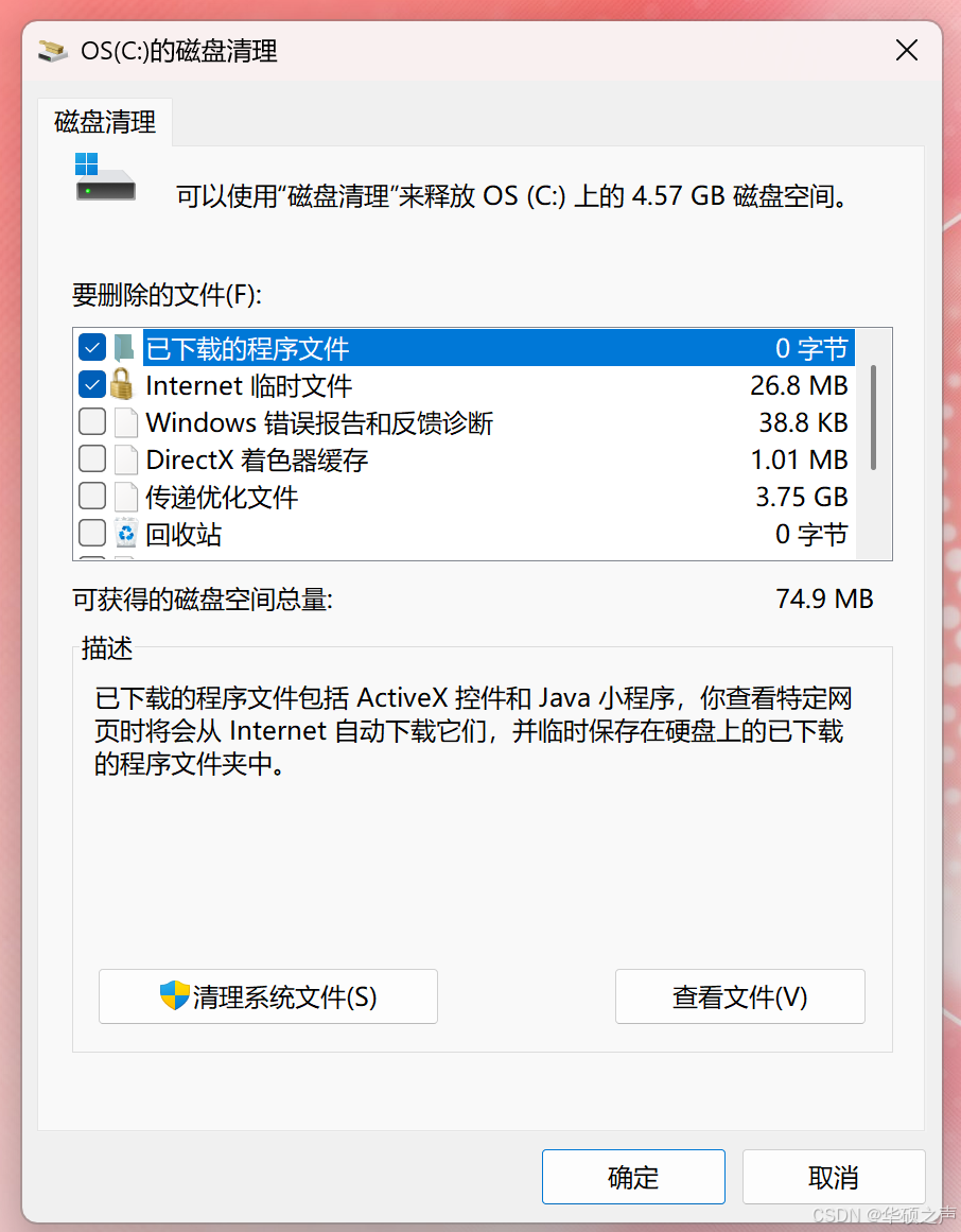 小提示:点击 "清理系统文件",还能删除旧系统备份(如 Windows.old 文件夹),能多释放几十 GB 空间~
