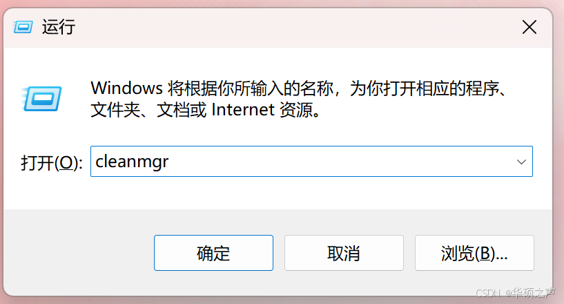 WIN+R 输入 cleanmgr 按回车,选择要清理的磁盘(通常先清 C 盘);