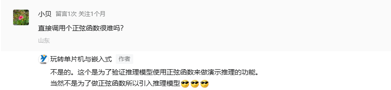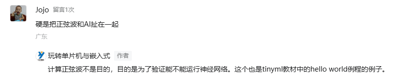 我的上一篇文章:谁说单片机根本不能跑AI模型?我已在STM32F103上实测TinyML除了获得很多的点赞和收藏之外,留言或者质疑声比较多的是:为什么为了计算正弦波,非要搞个神经网络出来?