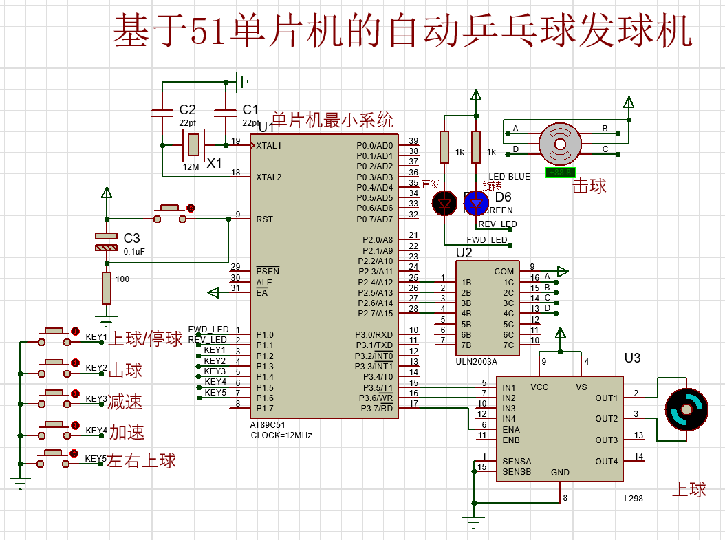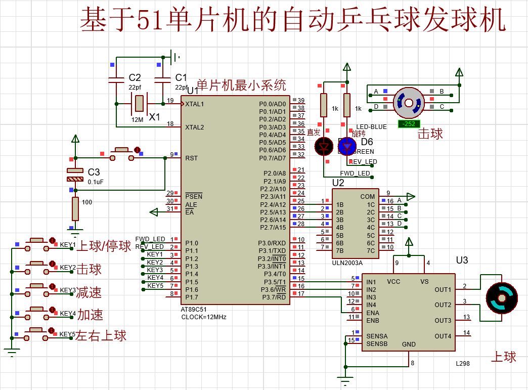 (2)按下按键2,电机2转动,为击球;可切换直发和旋转(正转和反转);