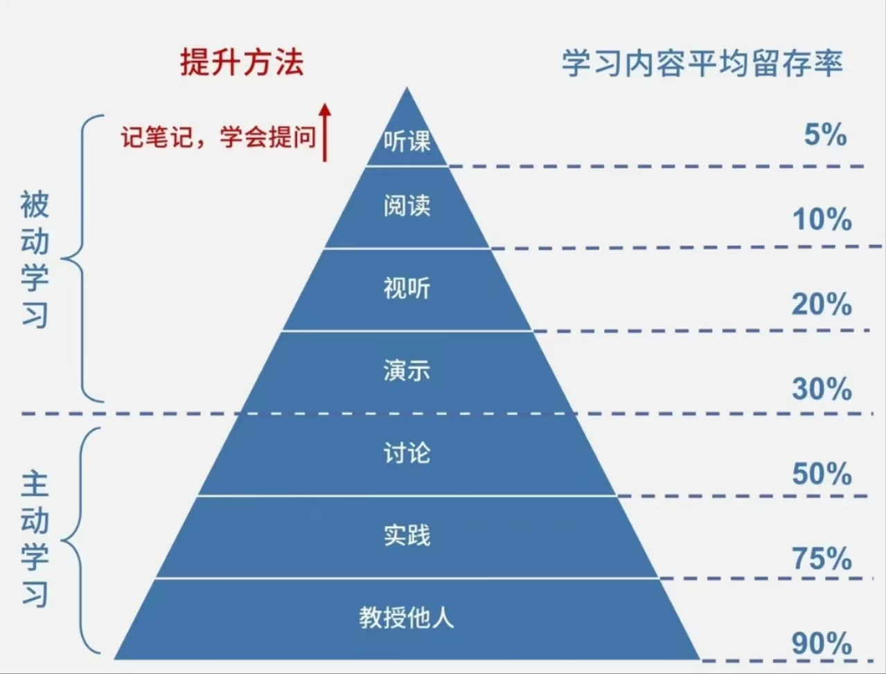 - 教授给他人:将所学知识传授给别人,这是最高效的学习方式,学习内容平均留存率可达90%。