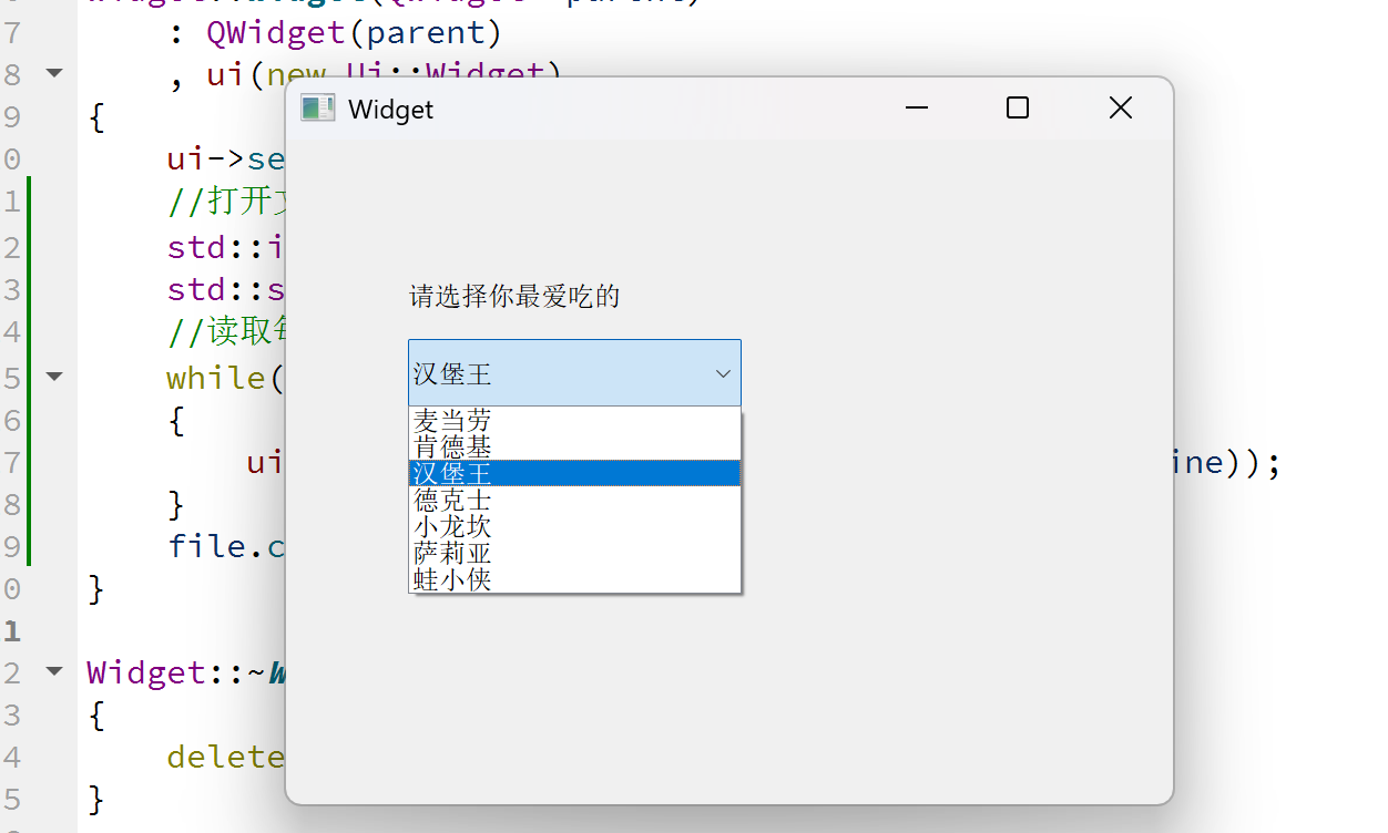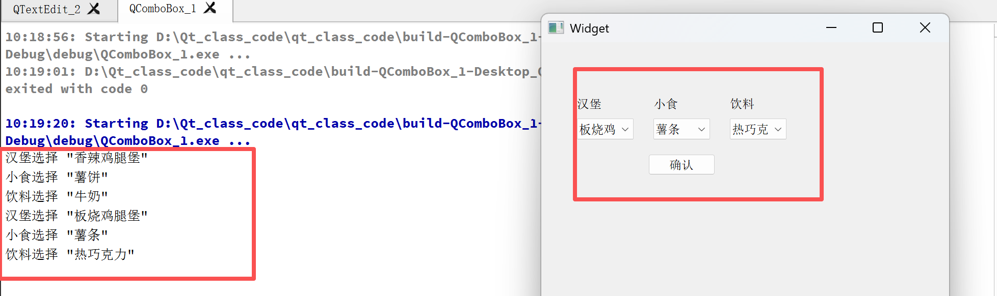 qDebug() << "汉堡选择" << ui->comboBox->currentText();