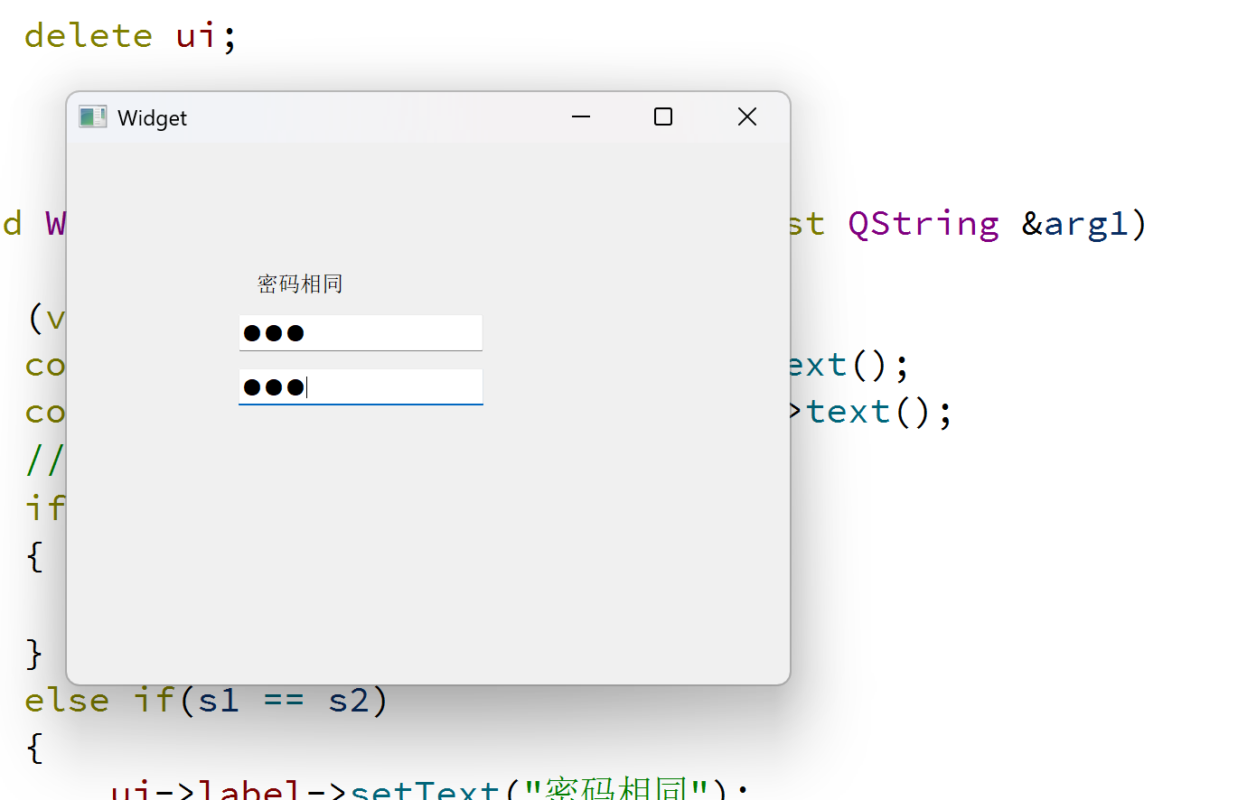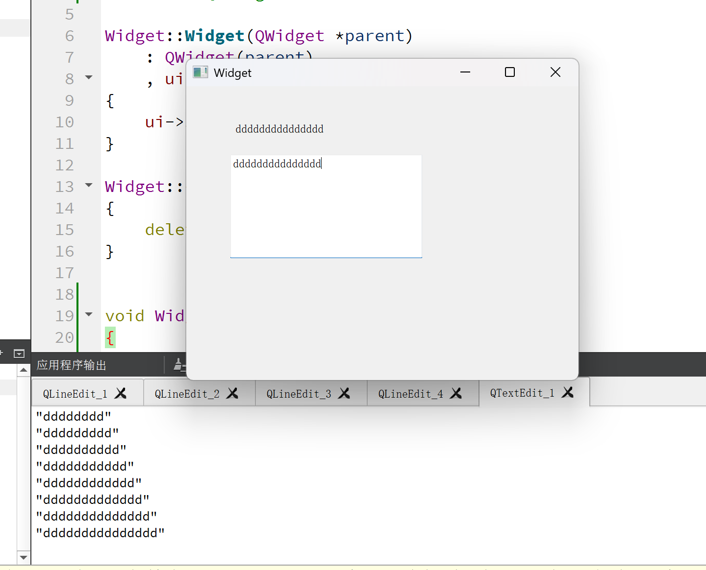 编写 widget.cpp, 给 lineEdit 添加 textEdited 信号的 slot 函数