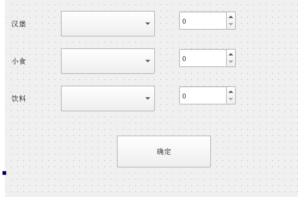 首先,在界面上创建三个下拉框、三个微调框和一个按钮