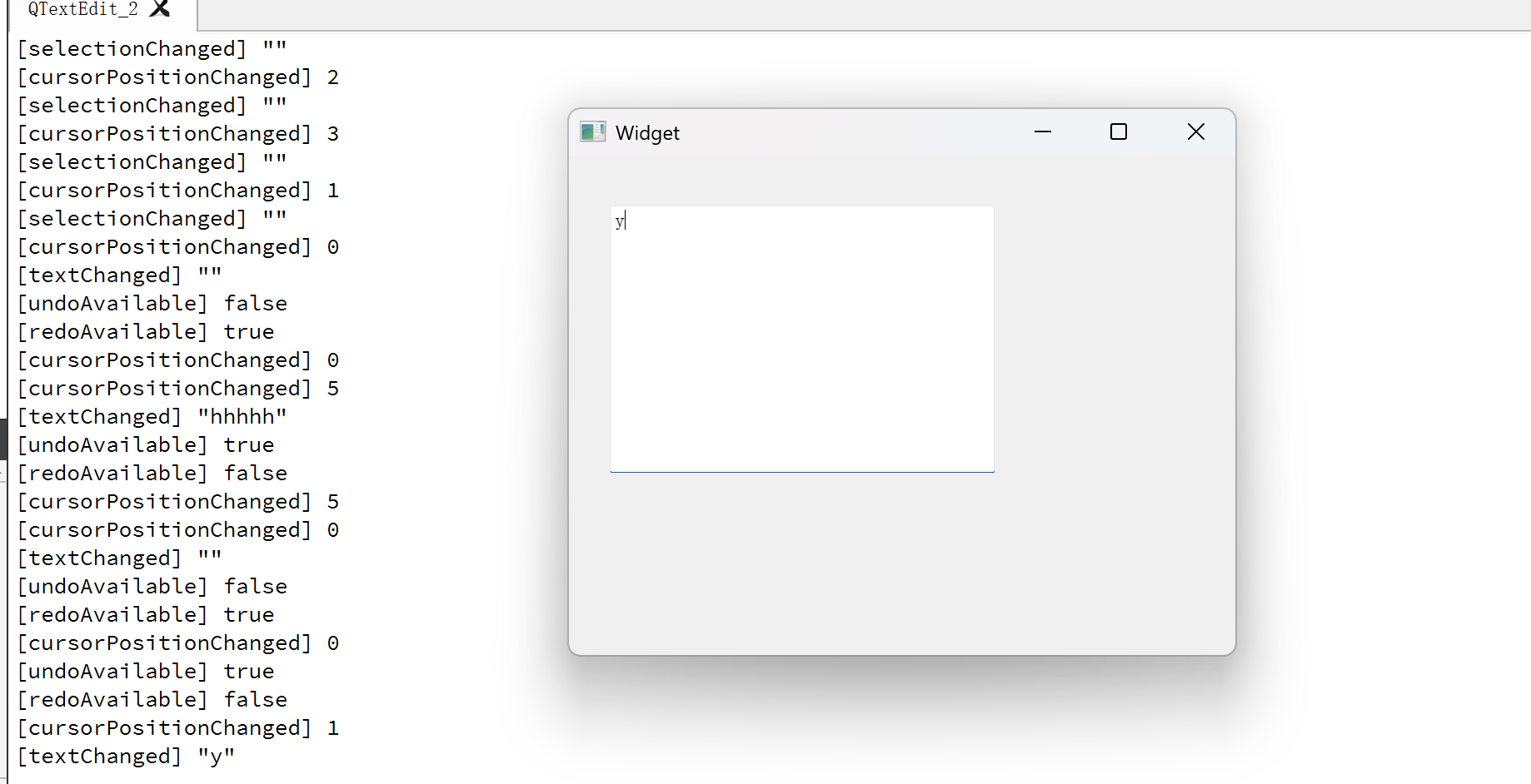 | void textEdited(const QString &text)) | 当QLineEdit中的文本改变时,发出此信号,text是新的文本。代码对文本的修改不能触发这个信号 |