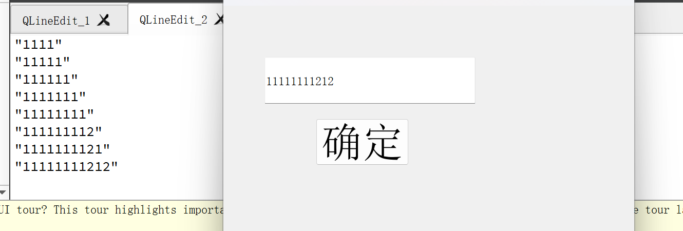 | void returnPressed() | 当返回或回车键按下时发出此信号,如果设置了验证器, 必须要验证通过,才能触发 |