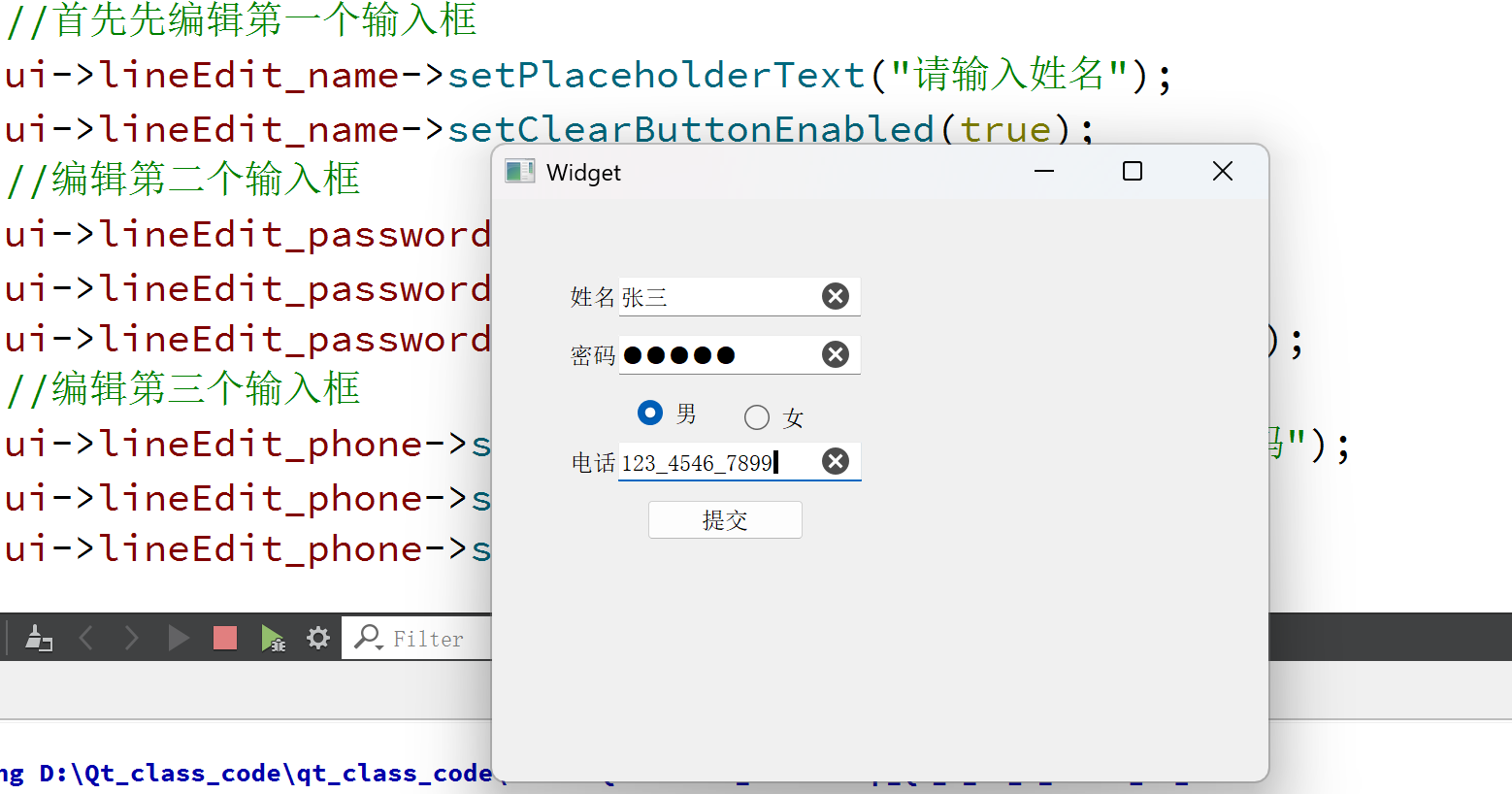 ui->lineEdit_phone->setPlaceholderText("请输入您的电话号码");