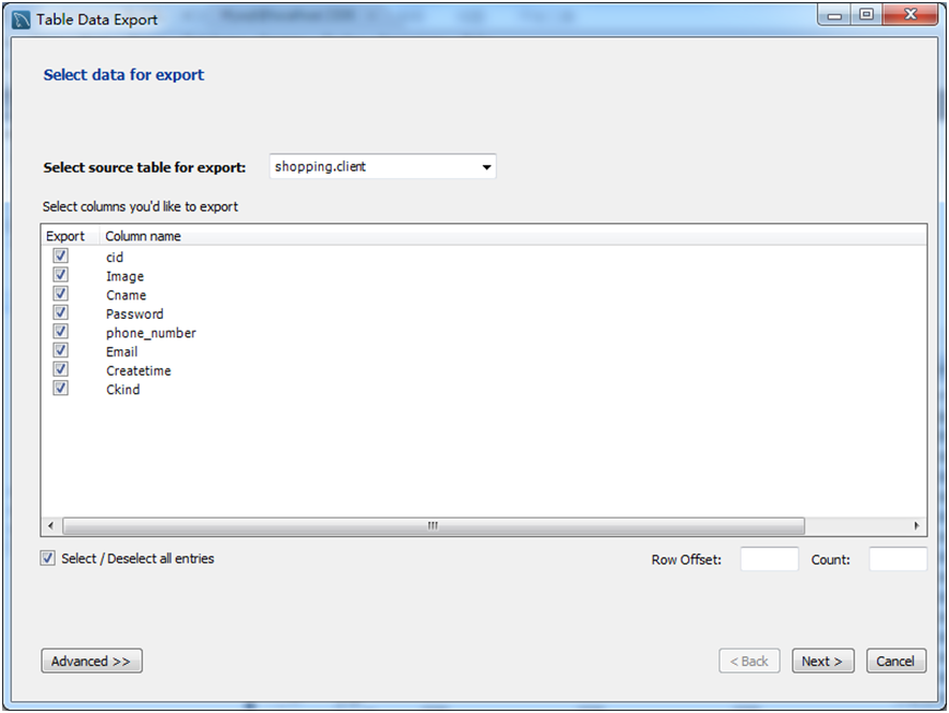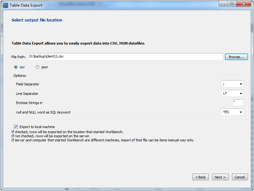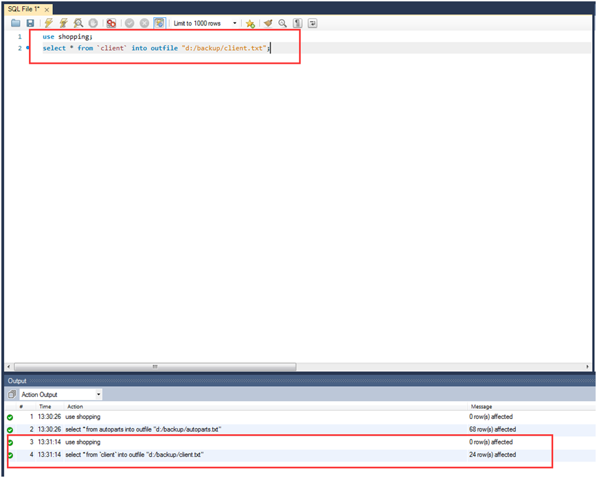 select * from `client` into outfile "d:/backup/client.txt"