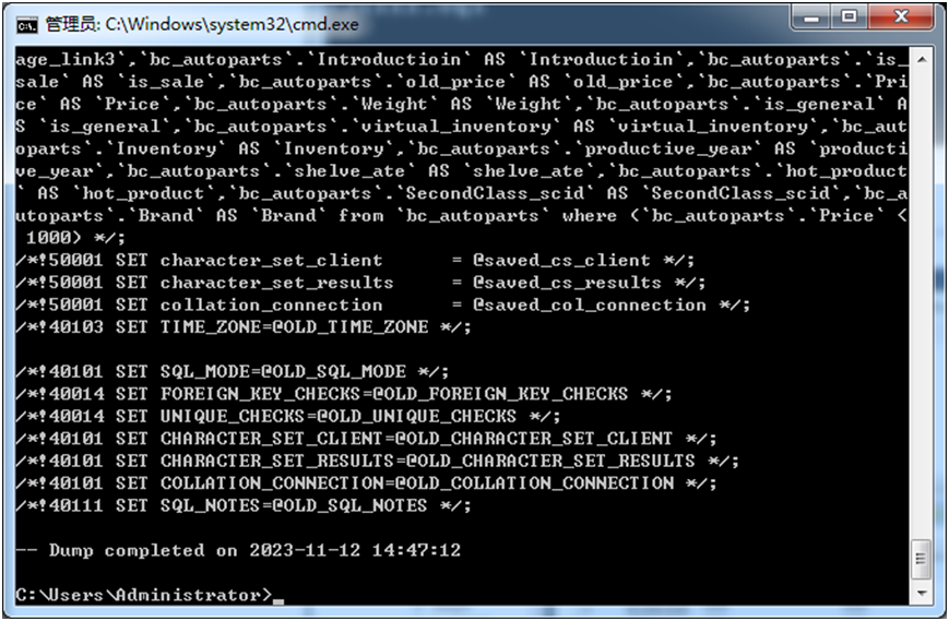 2.使用MySQL命令导出会员表和汽车配件表: