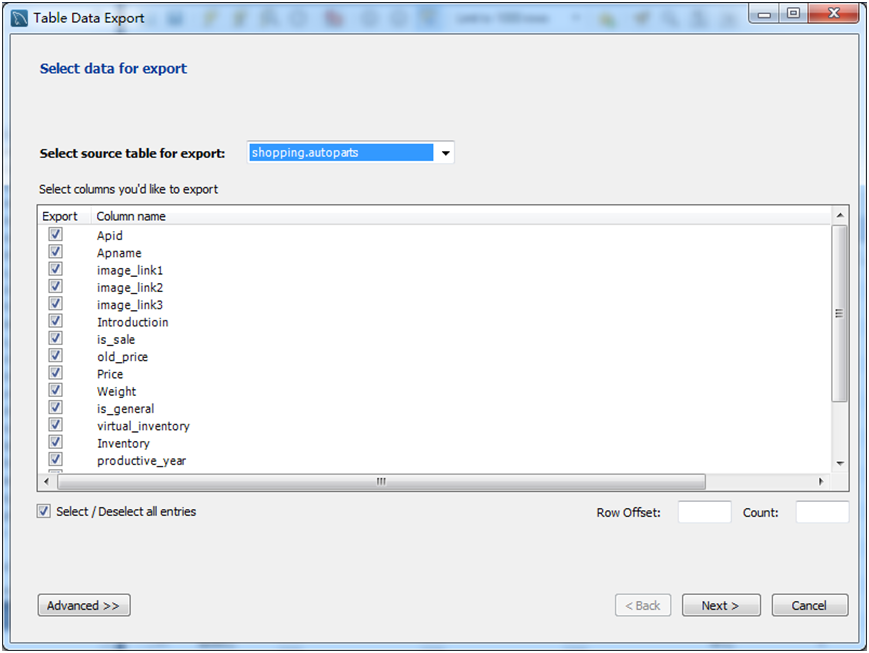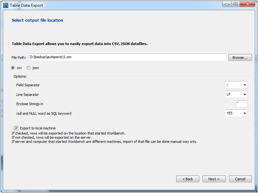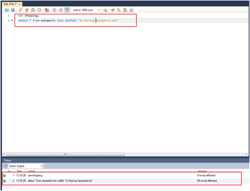 select * from autoparts into outfile "d:/backup/autoparts.txt"