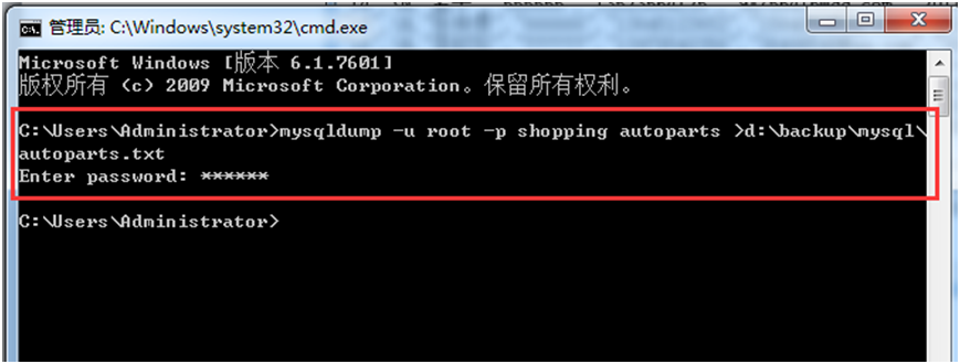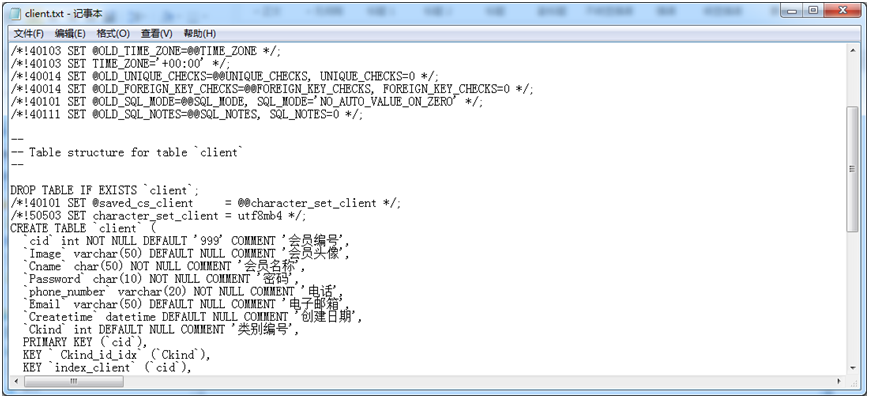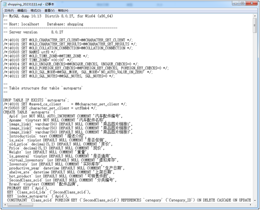 【实验6-4】使用mysqldump工具对Shopping数据库进行备份,查看备份文件。