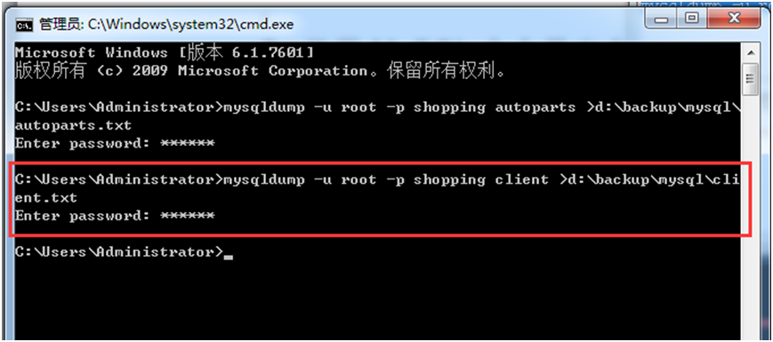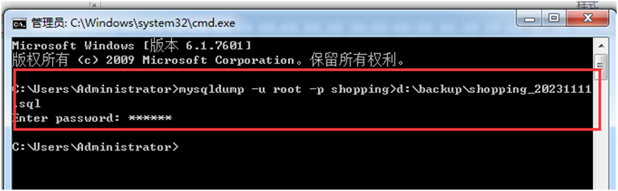 【实验6-6】使用mysqldump工具对Shopping数据库进行恢复,查看恢复前后Shopping数据库的数据状态。