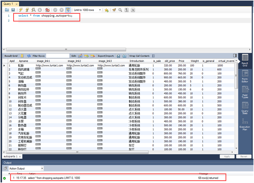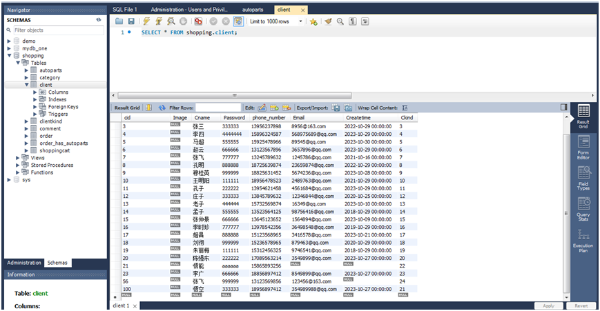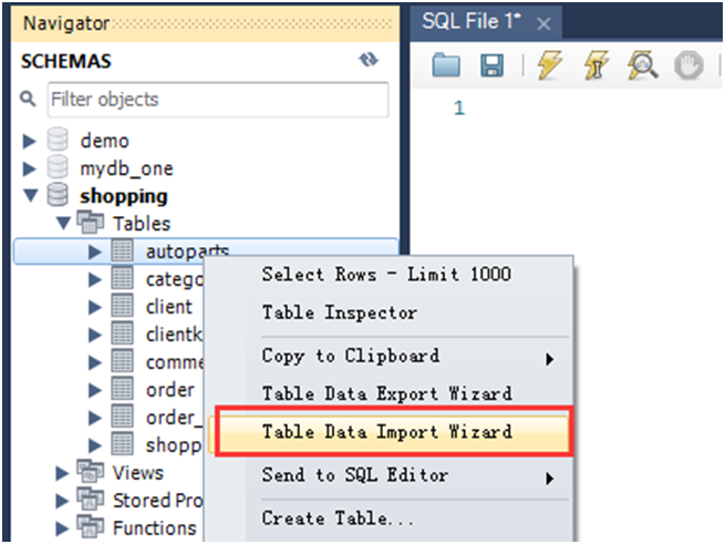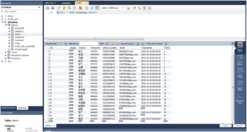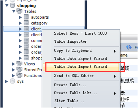 3.MySQL Workbench导入会员表和汽车配件表: