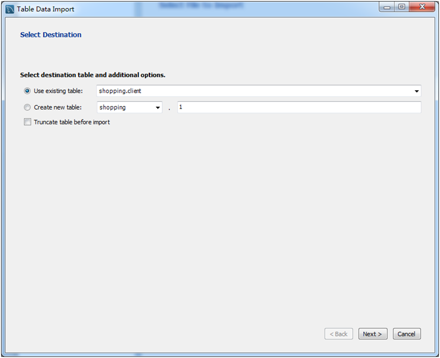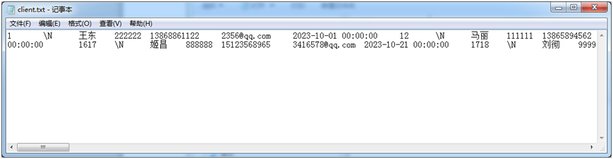 load data infile "d:/backup/client.txt" replace into table shopping.`client`