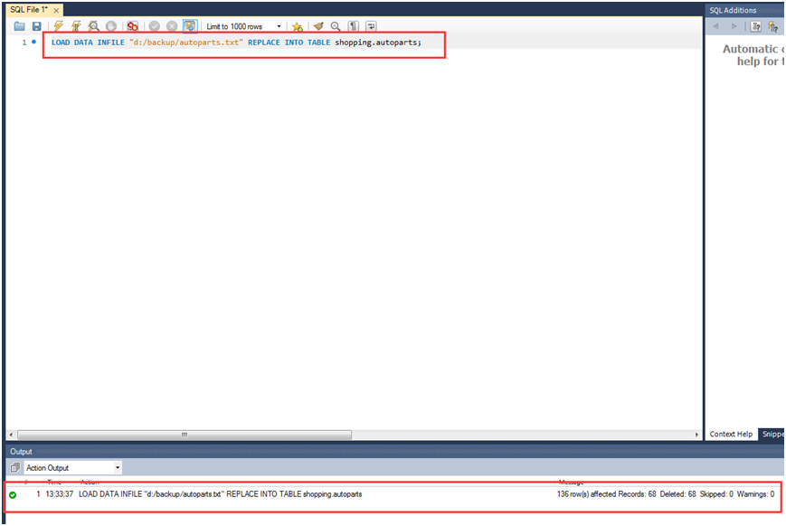 load data infile "d:/backup/autoparts.txt" replace into table shopping.autoparts;