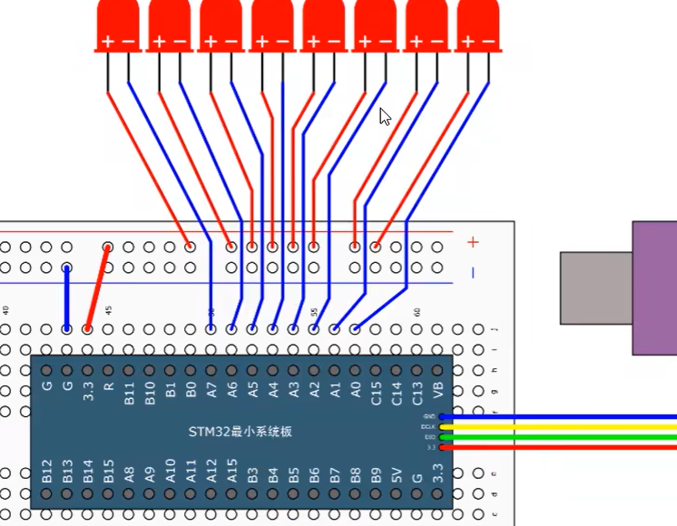 注意IO口是不能接入PA15,PB,PB4的端口的,这三个是默认的调试窗口要想变成普通端口还要进行一些配置
