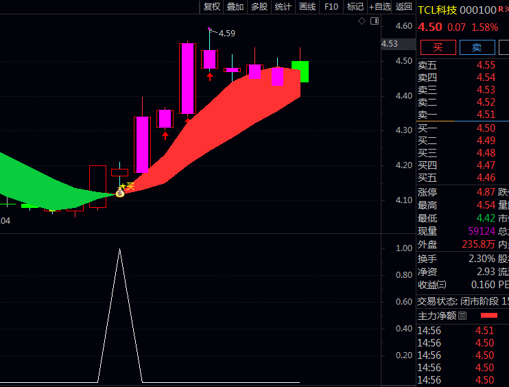 2.资金活跃度捕捉:通过处理过的成交量算法和量能均线比较,过滤掉那些无量自嗨的行情,专找有真实资金关照的。