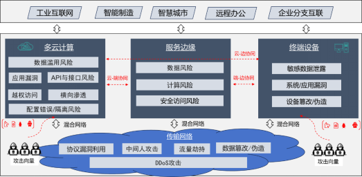"云-边协同"网络由于集中控制、广域传输、高价值服务目标等特点,面临的网络风险同样复杂且影响深远------一旦云或边缘节点被攻破,可能导致大规模服务瘫痪、核心数据泄露或全局策略被篡改。