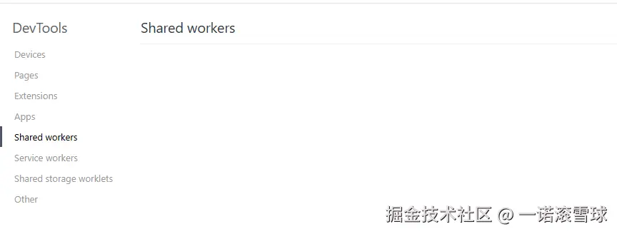chrome://inspect/#workers; - 页面会列出当前浏览器中所有运行的Worker实例,找到目标SharedWorker对应的"inspect"链接并点击,即可打开专属控制台。